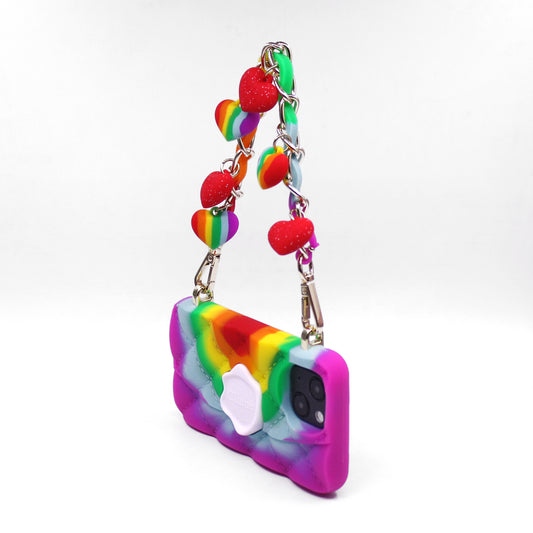 iPhone 13 Mini Rainbow Seal Stamped Case with Rainbow Hearts Strap