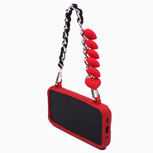 iPhone 12 Pro Max Red Seal Stamped Case with Glitters and Hearts Strap