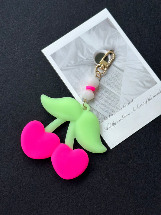 Sweetheart Cherries Keychain / Charm (Pink & Glow-in-the-Dark Green)